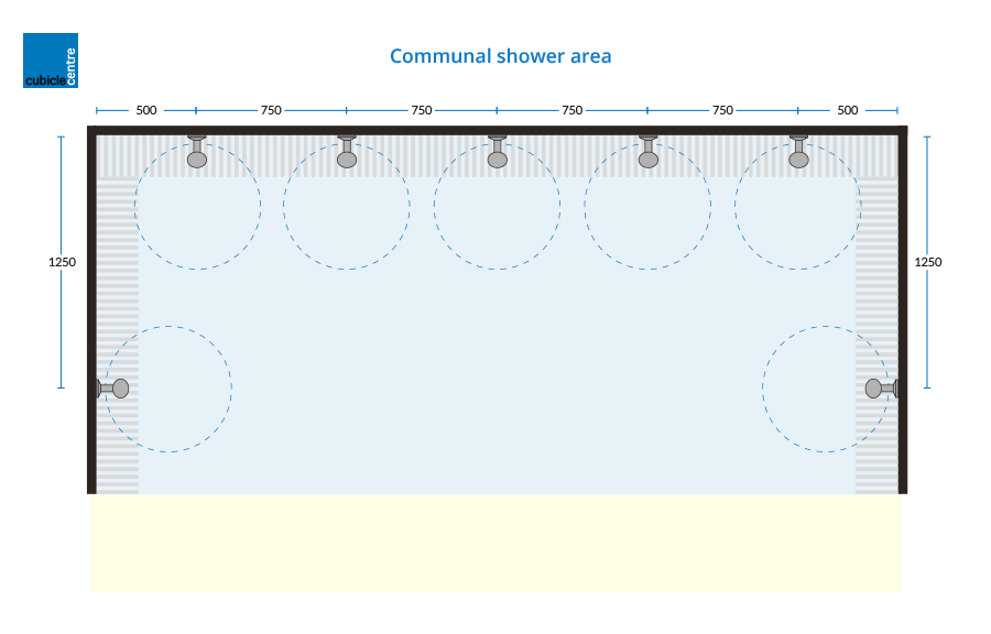 It is important to provide showers in any environment where people will be exercising, i.e. gyms, sports centres and swimming pools. Below are some common sizes for different shower configurations recreated from information provided by Sports England – Accessible Sports Facilities and Swimming Pools.